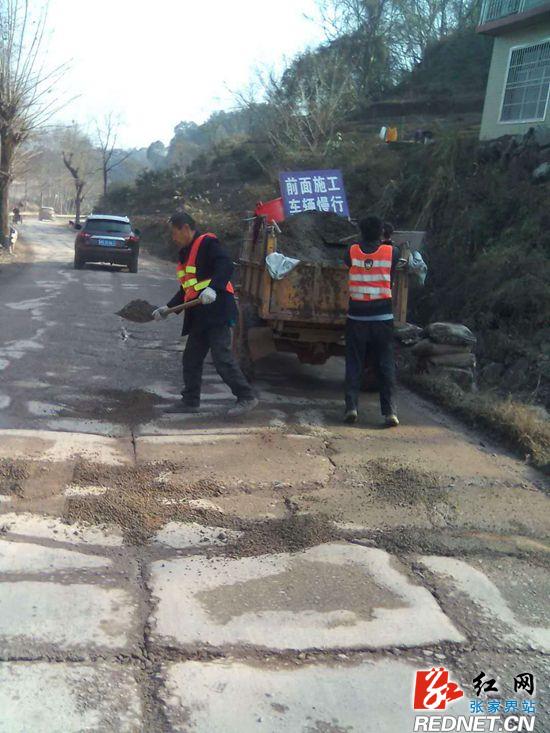 慈利县公路管理局节前突击填补坑凼保安全畅通