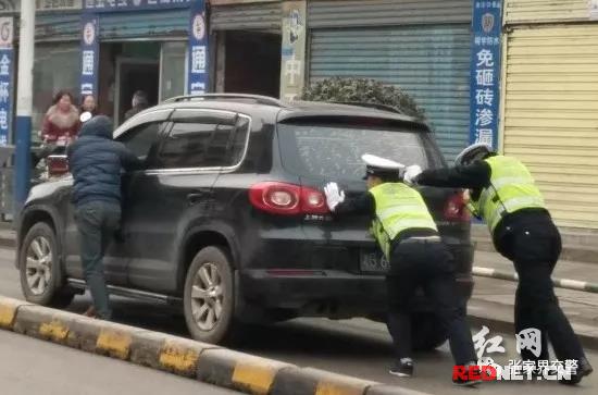 桑植交警上演“人力推车”
