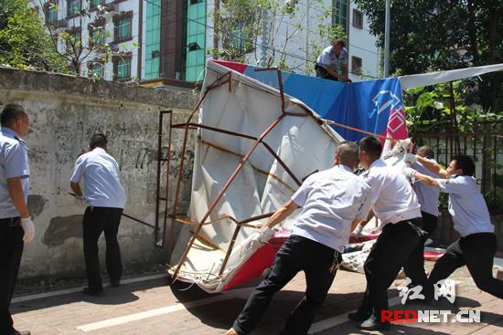 市城管执法支队拆除违规搭建广告(资料图)