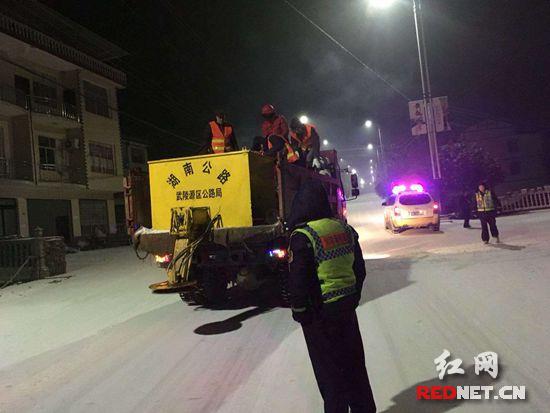 工作小组凌晨对森林公园路段进行撒雪融冰