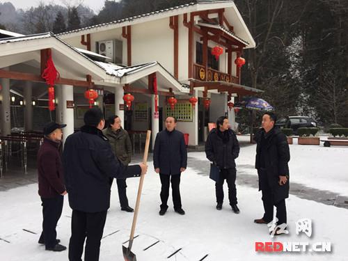 张家界市旅外委副主任邓少斌(右三)慰问森林公园门票站