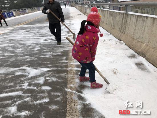 红网时刻张家界1月29日讯(通讯员 杨春才)1月27日13点左右,慈利县杨柳铺乡杨溪澧水大桥桥上,杨柳铺乡党委书记卓亚洲带领相关部门干部、党员、妇联、民兵、创业青年、少先队等爱心人员,自愿参与清扫桥面积雪,受到进出通道车辆、行人能顺利出行纷纷点赞,刷爆微信朋友圈。这是杨柳铺乡对特殊地段应急处理、特殊人群特殊照顾,冰冻降临、让情怀暖冬在行动。