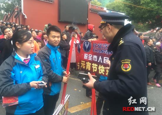 热闹欢腾中,文明祥和里,有很多人在身后默默坚守,城管人是代表之一。此次城管按活动会场将执法力量分别布置在中心城区步行街会场周边及市人民广场会场周边,在指定路口执勤,在活动区街面巡逻,为确保元宵节灯会活动顺利开展,灯会前期城管执法人员通过媒体提醒大家要文明参与、文明观灯、安全观灯、卫生观灯、有序观灯、欢乐过节,当一名合格的文明张家界赏灯人。在市城区临时投放垃圾收集点,每个点都有安排城管青年志愿者对路人进行劝导,并宣传各类灯会秩序,严禁任何单位和个人非法占道经营,焚烧垃圾、燃放烟花爆竹,严禁售、放孔明灯和氢气球,任何危险物品管制刀具等违禁品进入主城区,一经发现将予以查扣,以确保人民生命财产安全,为广大市民游客提供安全有序的节日环境。