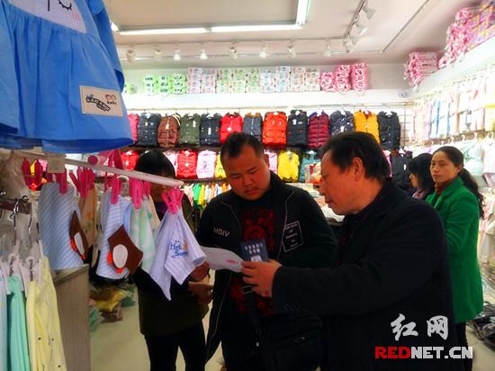 慈利县食药工质局执法人员在县城某服装店进行执法检查