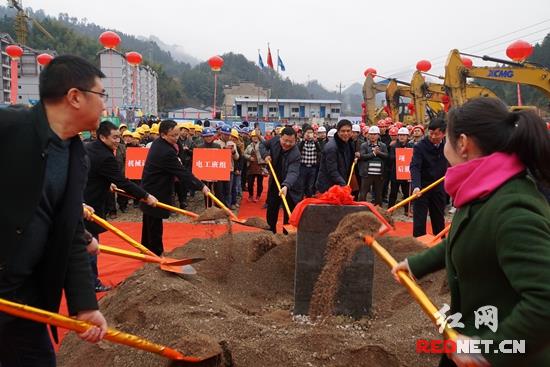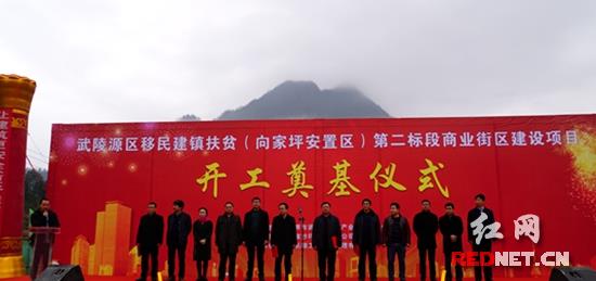 红网时刻武陵源3月4日讯(记者 梅叶)3月3日上午,武陵源区移民建镇扶贫(向家坪安置区)第二标段商业街区建设项目举行开工仪式。 区委常委、区委统战部部长陈贤德出席开工仪式并宣布开工。