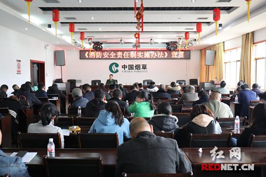 红网时刻张家界3月5日讯(通讯员 魏咏柏)3月5日下午,慈利县公安消防大队召开《消防安全责任制实施办法》宣贯会。全县消防安全重点单位消防安全责任人、管理人参加了会议。会议由慈利消防大队大队长罗光明主持。