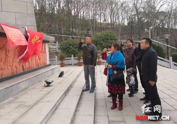 该乡联合党支部全体党员面对人民英雄纪念碑重温了入党誓词。后参观烈士陵园,缅怀革命先烈并面对先烈们默哀三分钟,向革命烈士敬献鲜花。