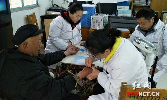 红网时刻张家界3月19日讯(通讯员 吴志华)3月18日,尽管天空下着大雨,慈利县龙潭河镇金坪卫生院如约而至来到伏龙村,为建档立卡贫困户、65岁以上老人及特殊人群进行体检服务。