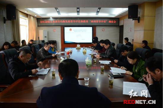 红网时刻永定3月23日讯(记者 谢丽琼)3月22日,永定区召开迎接义务教育均衡发展督导评估和教育“两项督导评估”调度会。会议汇报了2017年10月以来的迎检准备工作相关情况,永定区县各级教育工作单位汇报了督导评估问题整改情况,并讨论了教育工作上存在的问题。永定区委副书记、区长朱法栋,永定区人民政府副区长龚建梅参加会议。