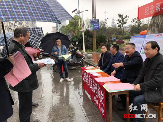 尽管天公不作美,但阻挡不了水利人的工作热情。水利局相关负责人亲临现场和工作人员一起向市民群众散发资料,积极宣传水法律法规知识、河长制工作、水土保持工作、水行政执法监管等,向市民解读《水法》、《水土保持法》、《水污染防治法》、《河道管理条例》等法律法规的相关内容,热情解答与市民生活息息相关的水利问题,认真听取他们的意见和建议,现场气氛热烈,市民纷纷驻足了解并参与其中。