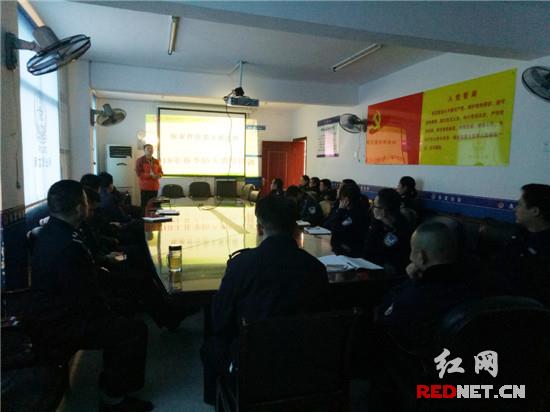 红网时刻张家界3月26日讯(通讯员 郑佳)3月26日上午,湘安消防公益服务中心教员来崇文派出所开展消防知识讲座,义务讲解各种消防安全知识。