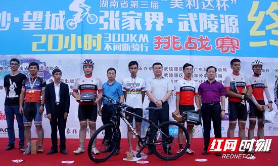 红网时刻武陵源5月13日讯(记者 李平)5月12日,湖南省湖南省第三届“美利达杯”长沙望城至张家界武陵源300公里不间断骑行挑战赛在武陵源完美谢幕。此次活动于5月12日凌晨五时在长沙望城正式举行,来自全国各地631名自行车骑手参加挑战,其中来自长沙榔黎轻快俱乐部的田吉华以9小时39分夺得男子组第一名,张家界市火车头俱乐部的李鹏娟以11小时52分夺得女子组第一名。