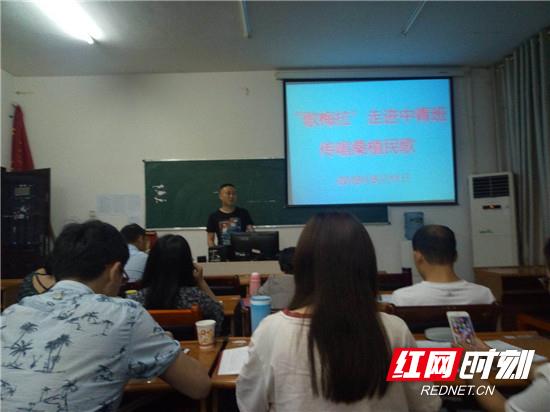 红网时刻桑植6月13日讯(记者 黎治国 )“ 九岭嘛十八岗唉,情哥我把坡上唉,姐儿在树下歇荫罗凉唉,翻过了几个岭嘞,走过了几道弯嘞,口问那个大姐讨花罗玩唉......”6月12日和13日晚,中国土家新元素歌梅拉组合王海春走进委党校课堂,为桑植县2018年中青年班47名学员教唱桑植民歌。