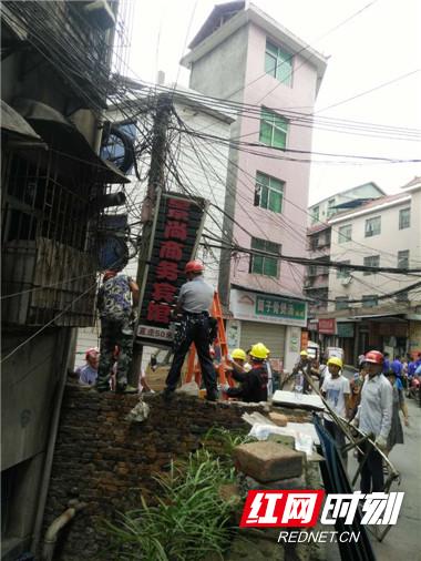 拆除巷道内乱挂的招牌