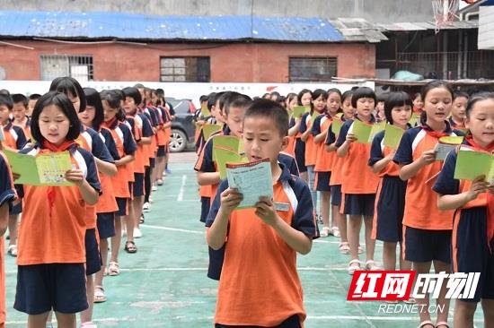 红网时刻张家界6月15日讯(通讯员 高蝶)为普及禁毒知识,加强禁毒宣传,提高青少年学生的心理预防能力和禁毒意识,在校园内营造人人参与禁毒的良好氛围,6月11日至6月15日,永定派出所联合永定街道办事处,在崇实小学、澧滨小学、解放小学以及张家界第一幼儿园组织开展禁毒知识进校园活动。