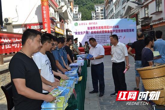红网时刻张家界6月15日讯(通讯员 蒋献辉)6月15日,武陵源区“安全生产月”启动仪式暨安全生产宣传咨询日活动在武陵源商业城举行,区委常委、常务副区长侯铁夫出席“安全生产月”启动仪式。