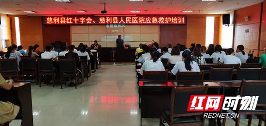 红网时刻张家界6月24日讯(通讯员 张静)为增强医护人员面对突发事件和意外伤害的应急知识,本着“挽救生命,减少死伤”的目的,帮助医护人员系统学习和掌握应急救护知识,提升应急救治技能,6月23日至24日,慈利县红十字会与慈利县人民医院联合在人民医院住院部16楼学术报告厅举办了红十字应急救护培训班,近50人参加培训。