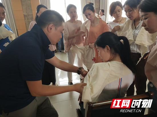 来自张家界市救护培训研究会的老师以生动的语言、真实的案例,采用热情的互动方式围绕突发事件,结合日常生活工作分别就急救的重要性、心肺复苏技术、止血、包扎、固定、搬运等医疗救护的基本常识和方法等应急救护知识进行了讲解和示范,尤其对如何在事故发生第一时间采取正确有效的应急措施,最大限度的挽救病人生命做了详尽的讲解,并组织学员分组练习,模拟场景救护训练。培训现场互动性强、气氛热烈,医护人员对徒手心肺复苏、创伤救护等有了更全面细致的认识,并锻炼了实际操作的能力,大家边学理论、边动手实际操作,表示要把学到的救护知识运用到平时的工作生活中,为人民群众的生命安全保驾护航。