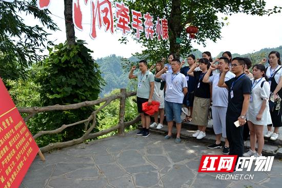 在十八洞村,全体党员及入党积极分子在讲解员的带领下,感受着十八洞村的村容村貌的现状,在浓郁苗族风情和美好生活图景中,切实体会到精准扶贫政策给十八洞村带来的可喜的变化。参观结束全体党员举起右手,面对党旗,重温入党誓词。在芷江抗日战争胜利纪念坊,全体党员及入党积极分子缅怀先烈丰功伟绩,接受革命精神洗礼。