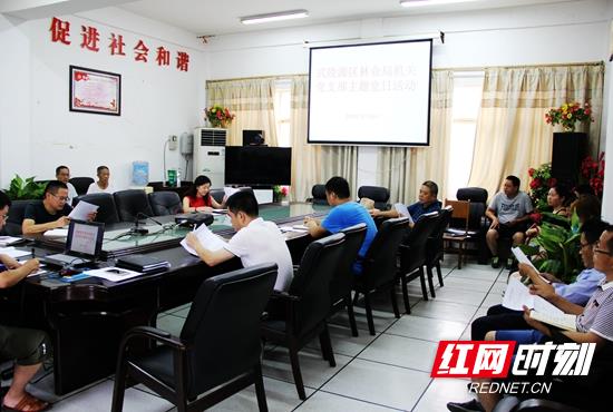 红网时刻张家界8月10日讯(通讯员 邓德华)“今天的会议共六个议题,首先请党员同志交纳本月的党费。”8月10日上午当主持人宣读第一个议题时,武陵源区林业局机关党支部主题党日活动正式开始。