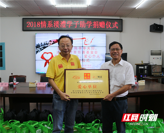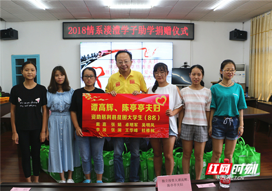 8月14日,2018年谭高辉、陈亭亭夫妇,湖南四叶草慈善基金会暨众爱心企业、爱心个人资助慈利县贫困大学生捐资助学仪式举行。慈利县委书记邱初开出席仪式。