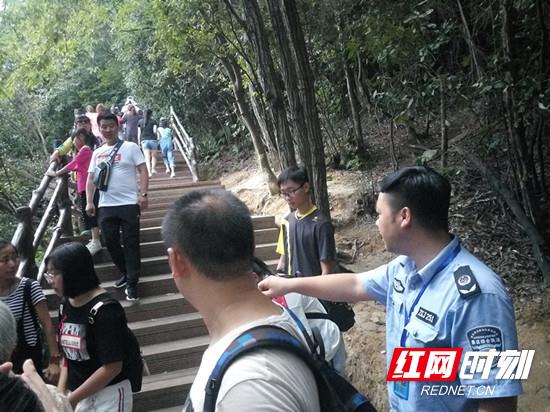 随着客流量的增多,袁家界景区游人如织,很多游客在聚集的景点排起了长队,为了尽快疏导游客,减少游客排队时间,张管局综合执法大队每天由大队长带领大队队员及部分中队执法人员,前往袁家界景区迷魂台、天下第一桥等景点进行第一时间疏导、分流,确保了游人游览安全。
