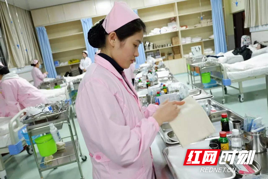 “艺术护理班”,是该校医学院与文法学院实行的大跨度的学科对接和专业融合的结晶,为全国首创,可以说,“惊艳”了业界,引发了关注,获得了赞誉。除了芭蕾形体课,学院还为“艺术护理班”的学生们开设了民族民间舞、文学经典赏析和艺术综合等主干课程,其目的就是“外炼优雅气质,内增人文素养”,从而培养岀气质优雅,亮丽清新、富有人文素养和艺术灵性的新一代护士。更重要的是,自2016级始,艺术护理班的教改成果,已经全面“回馈”到常规教学班,也就是说,张家界学院医学院所有护理专业的学生,除了严格的专业理论和技能的学习以外,还必须接受优化形象气质的芭蕾形体课程和提升人文素养的文学艺术课群,这就是该院所创立的独具一格的“四维度护理人才培养模式”的真正内涵。