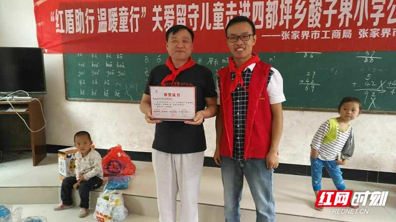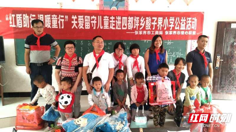 红网时刻张家界9月11日讯(通讯员 满益群)9月10日是第34个教师节。当天,张家界市工商局关心下一代工作委员会组织局党员干部走进永定区四都坪乡酸子界村小,开展了“红盾助行 温暖童行”关爱留守儿童公益活动,为老师送去了节日的问候,捐赠了一双鞋子和一套衣服,感恩老师的辛勤付出;为9位学生带去了微心愿礼物,希望他们开心快乐,健康成长;为学校捐款2000元,并捐赠了300本图书和一些教学、体育、学习用品,希望能为村小的教育事业贡献一份力量。