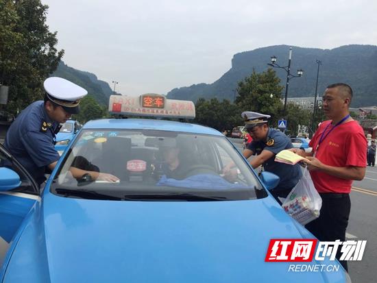 红网时刻张家界9月11日讯(通讯员 周兵)“出租车是城市的一张名片和文明的窗口,也是城市一道靓丽的风景线,更是文明城市工作的重要一环。请广大出租汽车驾驶员朋友在营运的过程中,一定要打表收费,时时保持车辆干净整洁”。9月11日,武陵源区交通运输局组织运政执法人员在武陵大道开展出租汽车行业“创三优”再宣传、再动员、再整治行动,提升出租车行业文明服务,助力全国文明城市创建工作。