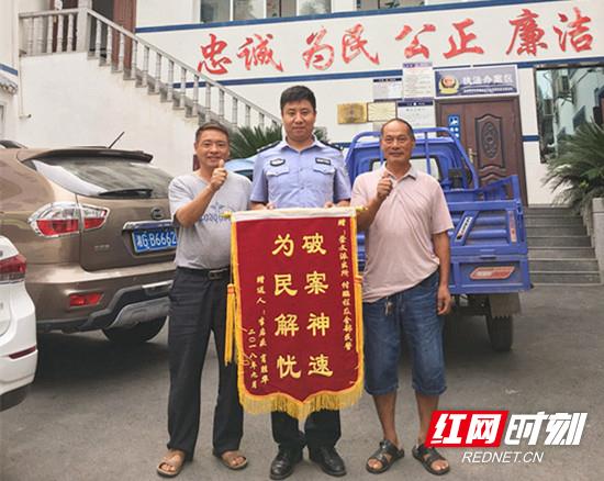 红网时刻张家界9月13日讯(通讯员 张银静)“警察同志,太谢谢你们了,抓到小偷,帮我挽回了损失”。近日,李先生和肖先生将一面印有“破案神速 为民解忧”的锦旗,送到了永定区崇文派出所。一进门,李先生和肖先生就紧紧握住民警的双手连声道谢,感谢民警迅速破案追赃,为自己挽回了财产损失。