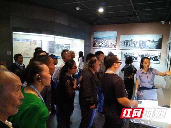 在讲解员的带领下认真接受红色教育