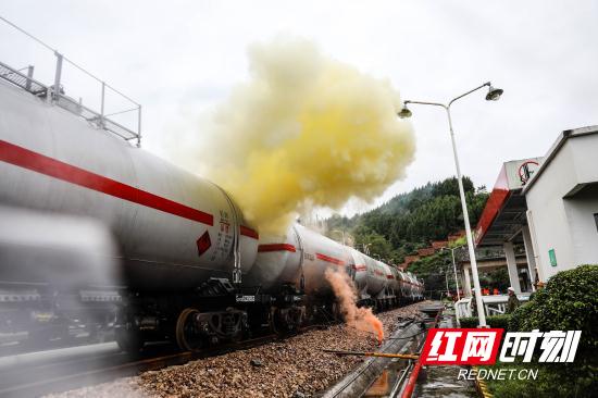 红网时刻张家界9月26日讯(通讯员 吴杰)9月26日上午10时,中国石化张家界油库铁路专用线突发事件联合应急演练在中国石化张家界石油分公司开展。中国石化湖南张家界石油分公司、张家界市新纪元石化公司、华南蓝天航空油料有限公司、张家界车务段、怀化货运中心、怀化公安处、张家界市消防支队、张家界市安全监督管理局、张家界市环保局、张家界市卫计委、黄金塔居民委员会等11个单位参加演练。