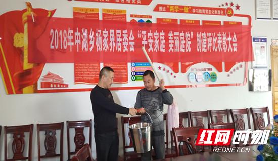 红网时刻张家界9月29日讯(通讯员 姜凤燕)“奖品是水桶和拖把,最好了。可以把家中里里外外打扫得更干净了”。9月28日下午,中湖乡杨家界居委会被评为“平安家庭,美丽庭院”示范户高高兴兴地领着小礼品对武陵源区人民检察院表示感谢。据悉,此次该院颁发奖品——水桶和拖把,意在鼓励居民发挥和谐家庭的社区优势,积极参与创造平安、文明、和谐、稳定的社会环境。