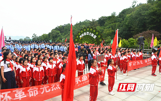 上午9时,纪念仪式正式开始,大家高唱《中华人民共和国国歌》,全体人员向烈士默哀寄托哀思,500名少先队员齐唱《我们是共产主义接班人》,向烈士表达传承 “忠爱国家、追求和平、无私无畏、舍身为民”革命精神意愿。