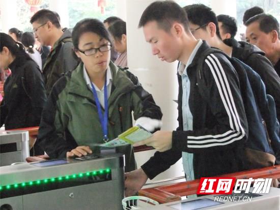 红网时刻张家界10月4日讯(通讯员 陈通)国庆长假,正是出游、走亲访友的好时机,然而张家界国家森林公园门票站的所有员工,仍然坚守在为旅客服务的一线岗位上,默默地工作着。是他们用辛勤和汗水履行着责任和使命,用实现“安全、有序、优质、高效、文明”五统一和游客“平安满意在张家界”的旅游服务目标,为旅客的假期旅游保驾护航。