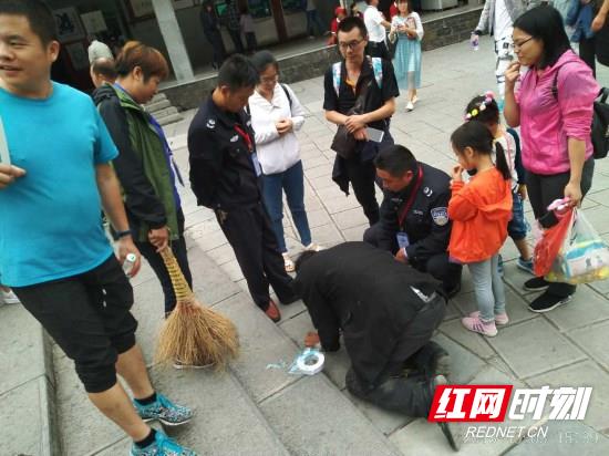 旅游执法队员为旅客寻找落入水沟的证件