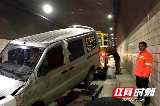 红网时刻张家界10月5日讯(通讯员 李伟)10月5日,“十一”国庆假期第5天,来自全国各地的游客前往武陵源核心景区游玩。早上7点,通往张家界国家森林公园的交通要道峪园隧道内,一辆满载水果蔬菜的面的车发生翻车事故,未发生人员伤亡,对道路交通带来一定影响。武陵源区老木峪隧道管理所峪园隧道值班人员发现情况后,迅速向区隧道管理所主要领导汇报,隧道管理所接到情况报告后,迅速启动交通应急预案,出动清障车和运输车各一台,帮助司机把蔬菜和水果安全运离,及时把面的车拖出隧道,确保了道路交通安全畅通。