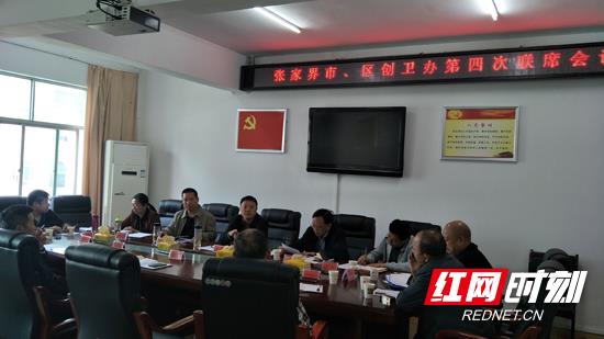 红网时刻张家界10月12日讯(通讯员 曾珊珊)10月12日上午,张家界市区创卫办第四次联席会议召开。会议由市创卫领导小组副组长、市创卫办主任邓大渊主持,永定区创卫办、武陵源区创卫办、市城管局、市规划局、市经信委、市民政局、市商务和粮食局、市交警支队、市畜牧水产局和永定区畜牧水产局等相关单位负责人出席了会议。