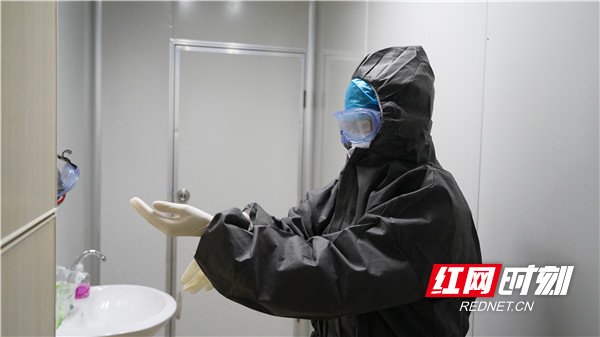 “衣服一定要穿好,是保护自己,也是保护别人。”进入隔离区前,从第一步洗手,到穿上隔离衣、防护服、手套、口罩、护目镜、鞋套……一直到进入隔离病房,黎权宝差不多用了将近半个小时的时间。而防护服属于一次性用品,穿上防护服,就无法喝水,也没有办法上洗手间。医护人员都告诉自己,尽量少喝水。