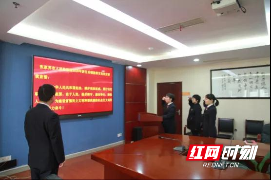 在党组成员、政治部主任许朝晖的带领下,新任员额检察官向宪法庄严宣誓:忠于中华人民共和国宪法,维护宪法权威,履行法定职责,忠于祖国、忠于人民,恪尽职守、廉洁奉公,接受人民监督,为建设富强民主文明和谐美丽的社会主义现代化强国努力奋斗!