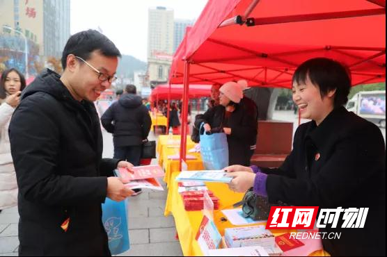 12月4日,积极参加张家界市2020年“宪法宣传周”系列宣传活动,在市城区人民广场设立咨询台,通过发放宣传资料、放置展板、现场答疑的方式普法。