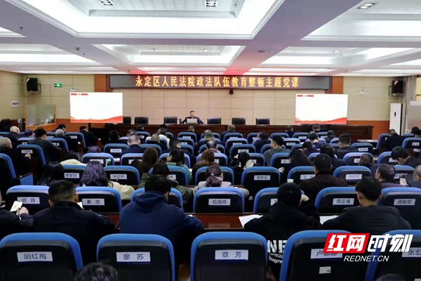 红网时刻张家界3月16日讯(通讯员 何莉)3月16日,永定区人民法院开展政法队伍教育整顿主题党课。区法院党组书记、院长彭军以《以政法队伍教育整顿为契机永葆清正廉洁的政治本色》为题,为全院干警上了一堂深刻的专题党课。