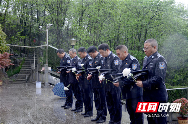 “我志愿加入中国共产党,拥护党的纲领……”豆大的雨点噼里啪啦地打在身上,湿透了衣背,慈利县铁路派出所的民警铿锵有力的宣誓声回荡在烈士纪念碑的上空。