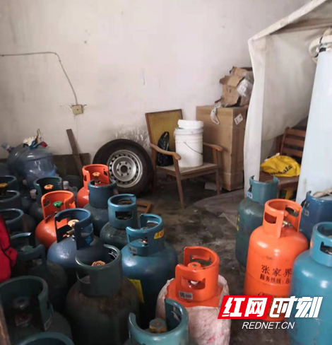 红网时刻张家界7月7日讯(通讯员 卢智勇 )7月6日上午,据市民举报,张家界市永定区大庸桥街道辖区大庸桥社区电视台职工宿舍楼院内存在非法储存倒卖燃气行为,使职工宿舍楼院及周边居民感觉自身生命财产安全受到极大威胁,存在重大安全隐患。