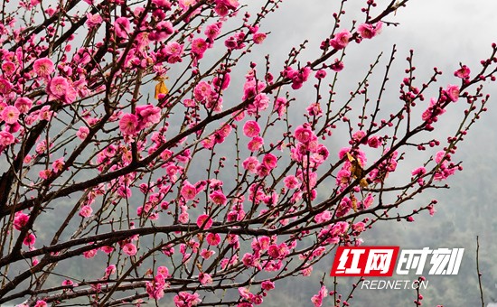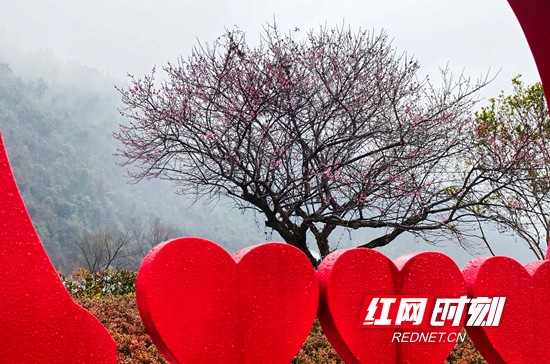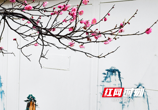 红网时刻新闻1月29日张家界讯(通讯员 吴勇兵)1月29日,湖湖南省张家界市武陵源区家嘴公园,梅花在雨中悄然绽放,幽香四溢,成为都城区的一道风景。