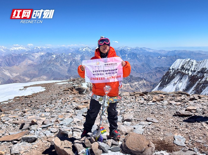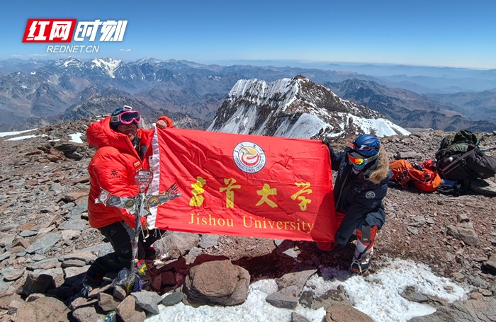 让世界看见湖南,让世界看见吉首大学!阿根廷当地时间1月3日14时30分,吉首大学旅游与城乡规划学院院长、湖南省登山队队员鲁明勇教授,与刘杨、刘燕共7名队员历经十余小时艰苦攀登,全员成功登顶南美洲最高峰阿空加瓜山。此次100%登顶率,在以强风、长坡著称、登顶率偏低的阿空加瓜攀登史上写下浓墨重彩的一笔,也标志着湖南省登山队“7+2”全球探险大满贯计划顺利完成四站。