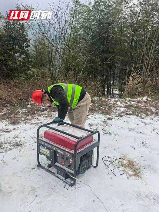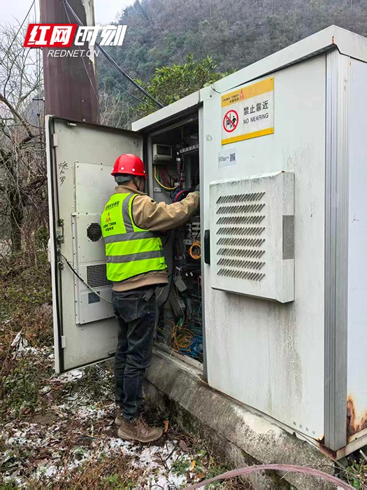 张家界地势险峻,山峦起伏,众多基站建于高山峻岭之上。雨雪冰冻天气导致部分山路结冰,车辆通行困难。面对这一挑战,代维人员没有丝毫退缩。他们携带发电油机及抢修工具,脚踏冰凌、顶风冒雪,以肩扛手抬的方式徒步上山,争分夺秒开展发电保障与故障修复。高山站点气温往往低于零下,杆塔、设备上覆冰厚重,抢修作业难度极大。维护人员在确保安全的前提下,登塔除冰、检测线路、恢复供电,用行动诠释了“通信卫士”的职责担当。正是凭借这样一股不畏艰险、逆行而上的劲头,一批批高寒偏远地区的基站得以稳定运行,通信信号穿越冰雪,持续覆盖着每一个角落。