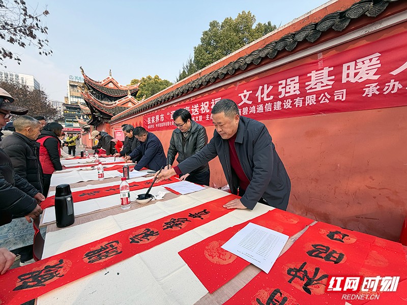 红网时刻新闻2月8日讯(记者 廖秋萍 通迅员 刘晓霞)新春将至,年味渐浓。2月8日,张家界市“迎新春送祝福·文化强基暖人心”志愿服务活动举行。活动以笔墨为媒传递温情,以文化为桥凝聚人心,为冬日的山城增添浓浓暖意,营造出了喜庆祥和、文明和谐的迎春氛围。此次活动由湖南省碧鸿通信建设有限公司主办,中共张家界市委社会工作部、张家界市文联指导,市书法家协会具体承办,南正社区协办。
