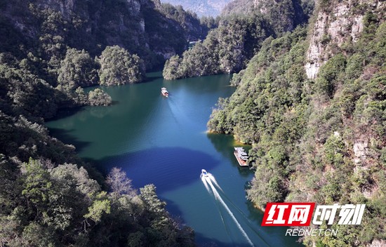 红网时刻新闻3月11日张家界讯(通讯员 吴勇兵)3月11日,张家界市武陵源区宝峰湖风景区,叠翠的峰峦、慢行的游船、碧绿的湖水,构成一幅和谐惬意的春色画卷,吸引各地游客春游踏青。