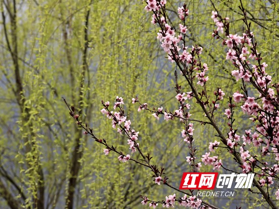 红网时刻新闻3月24日张家界讯(通讯员 吴勇兵)3月24日,春日的张家界市武陵源区索溪河畔,水波潋滟,柳绿花红,满眼的春意向远处舒展,每一处细节都透着生机与灵动,在这里定格下这份属于武陵源春日的温柔与烂漫。